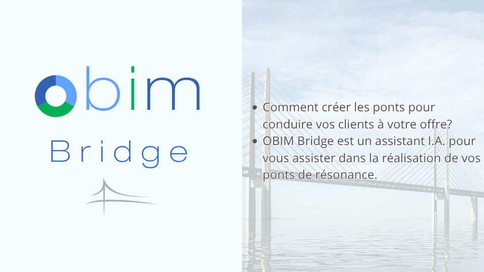 - créer les ponts de résonance pour conduire vos clients depuis la rive de l’inconscience jusqu’à la rive de la valeur.